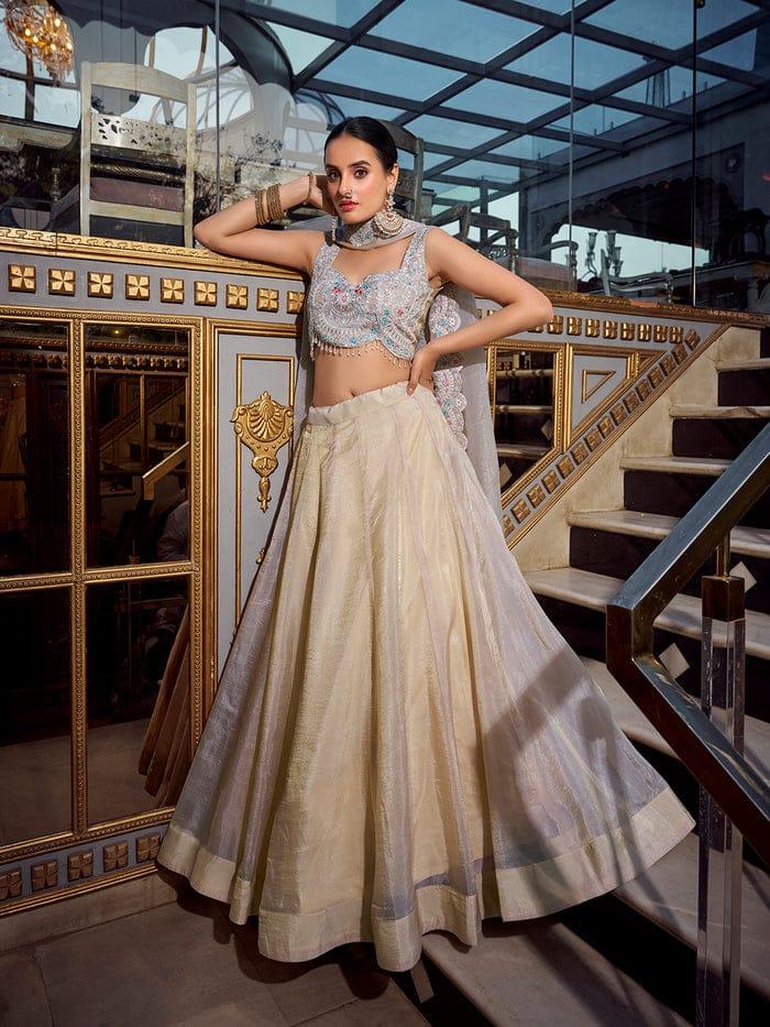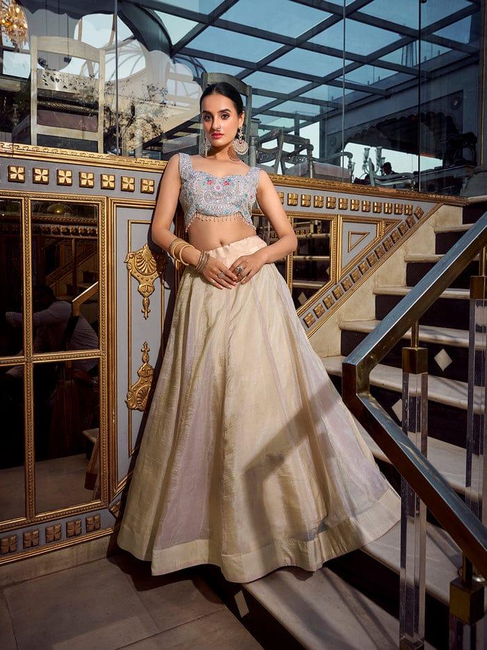 Cream Color Sequins And Thread Embroidery Work Gold Crush Lehenga Choli