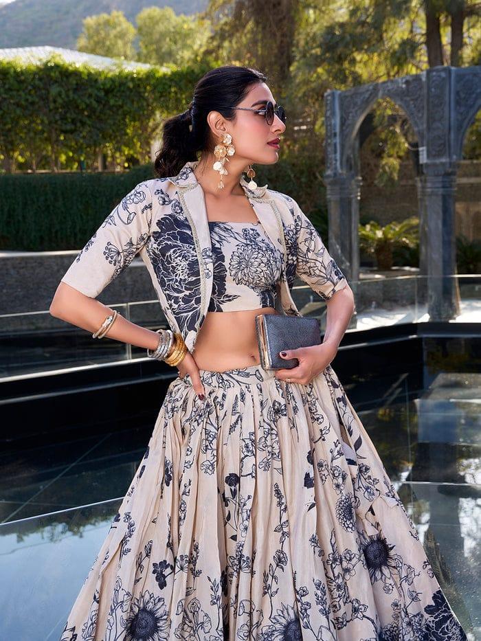 Cream Floral Print Tussar Silk Co-ord Set lehenga Choli