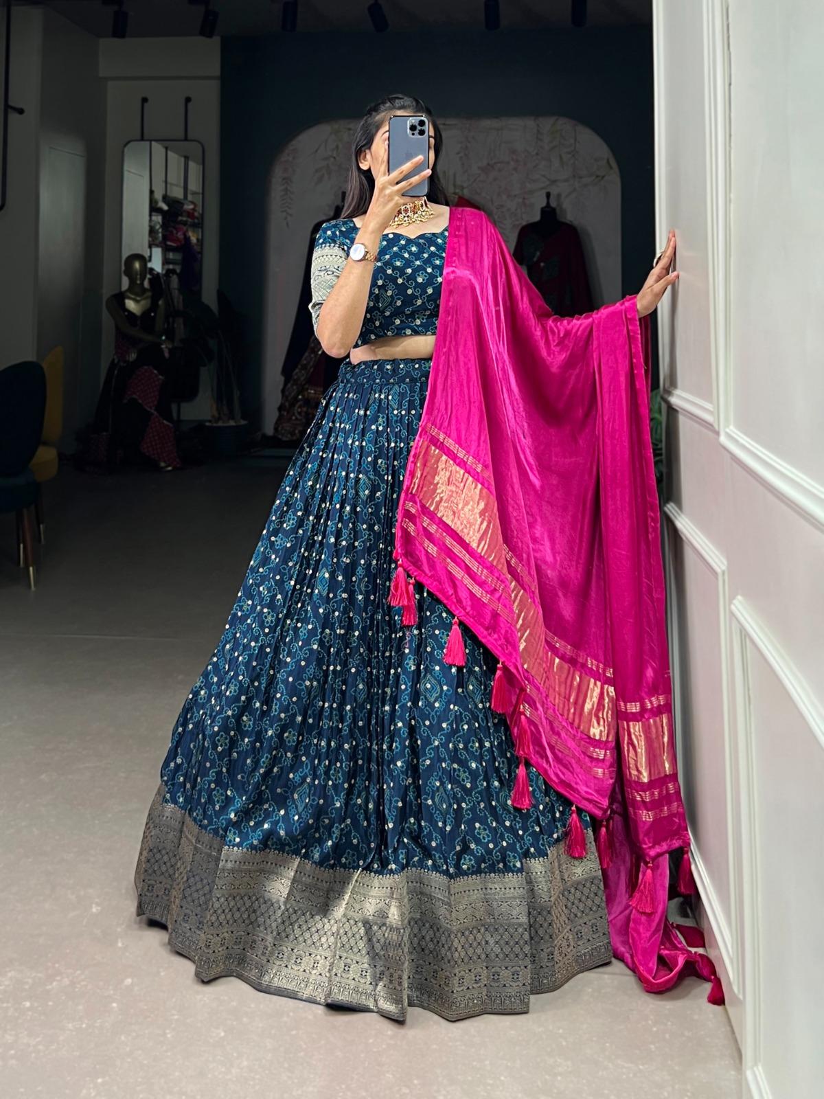 Package Contain : Lehenga, Blouse, Dupatta, Drawstring with Zip, Tassels
