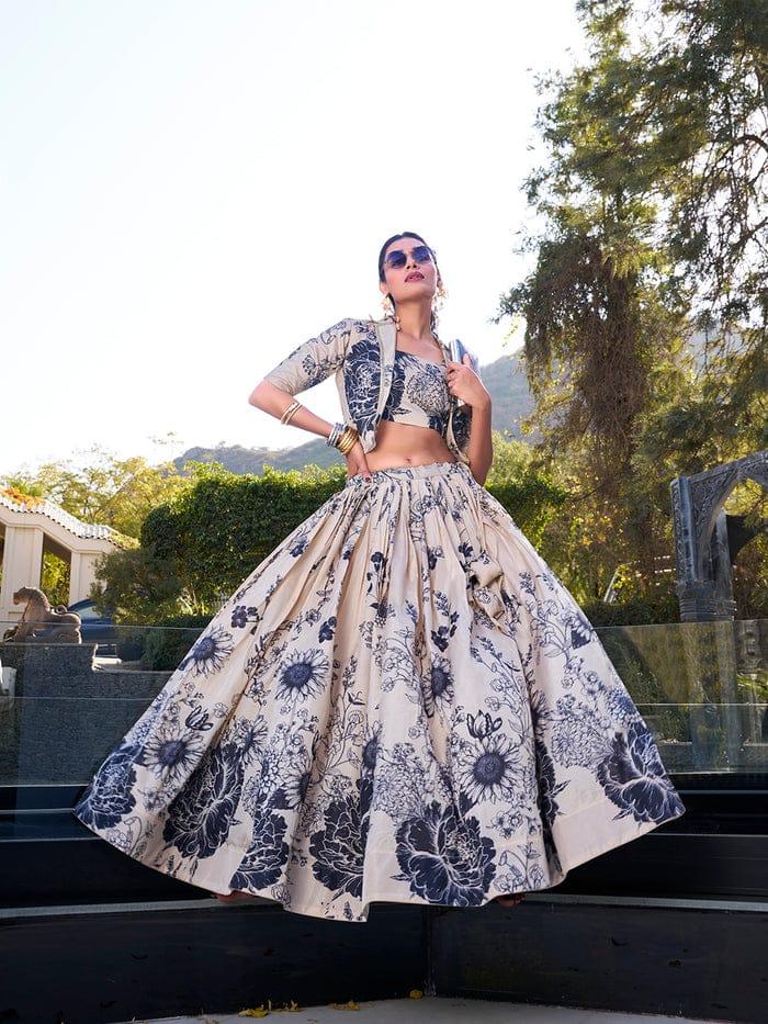 Cream Floral Print Tussar Silk Co-ord Set lehenga Choli