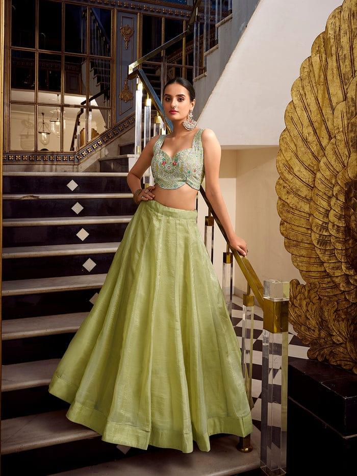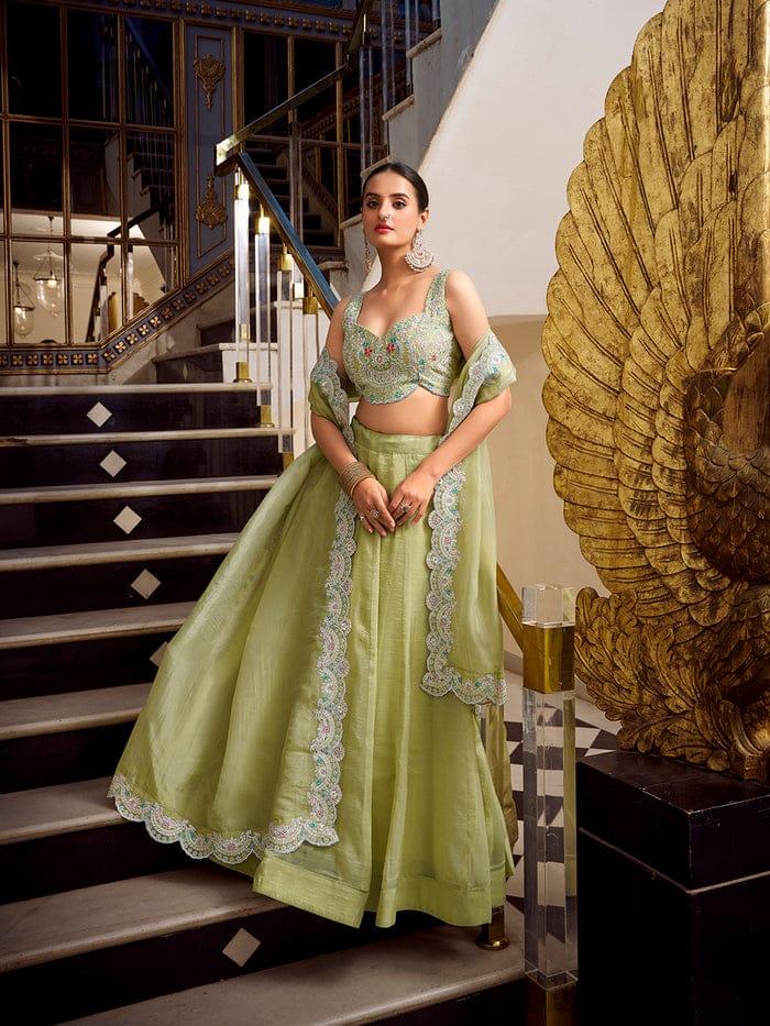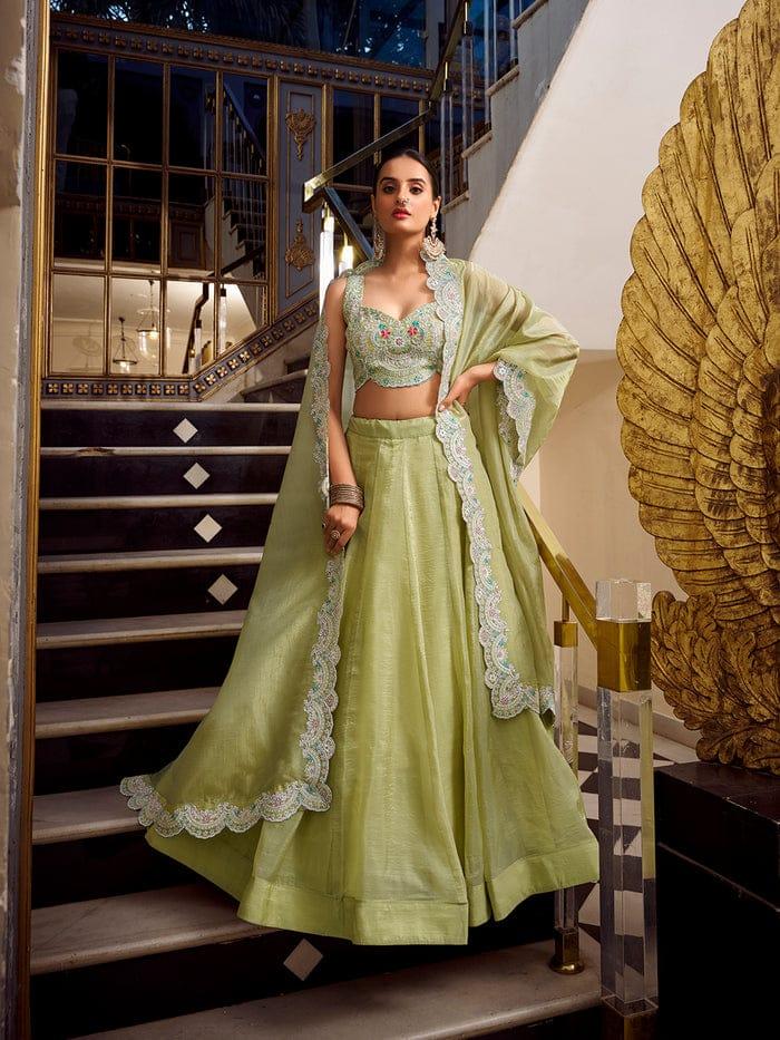 Tea Color Sequins And Thread Embroidery Work Gold Crush Lehenga Choli