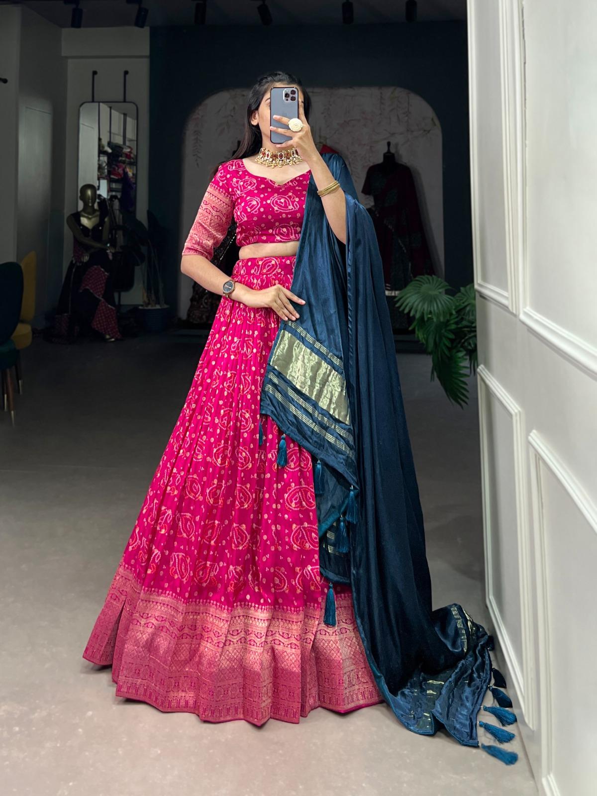 Package Contain : Lehenga, Blouse, Dupatta, Drawstring with Zip, Tassels